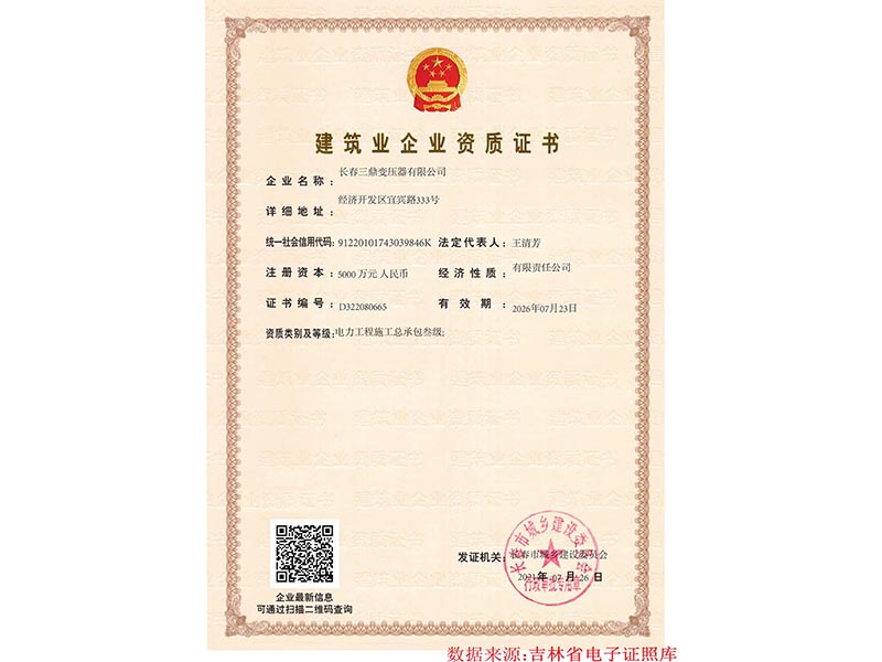 Qualification Certificate of Third Level Enterprise for General Contracting of Electric Power Engineering Construction