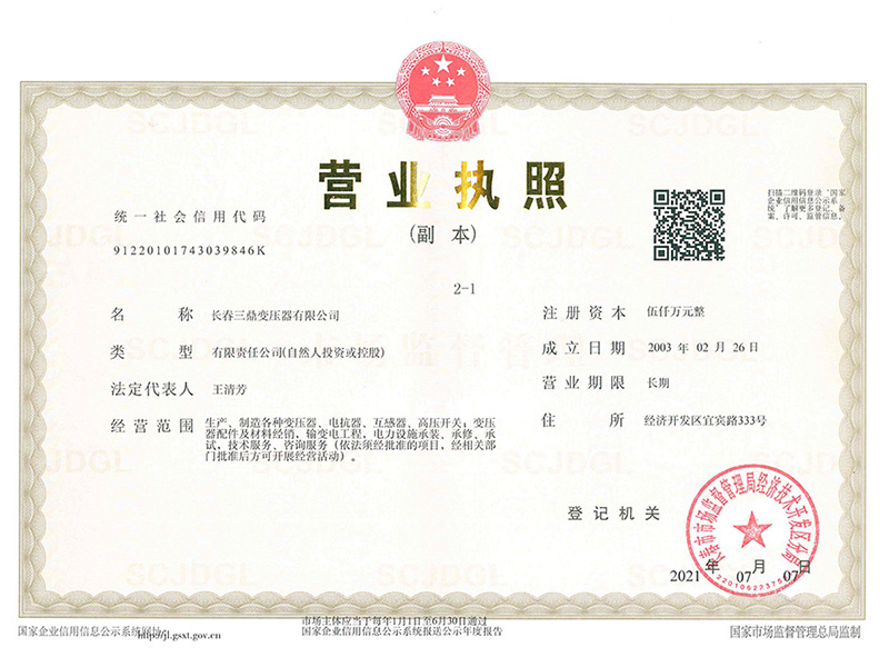 Changchun Sanding Transformer Co., Ltd Ji ICP Bei No.06004639-1