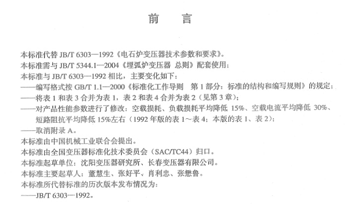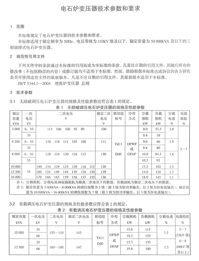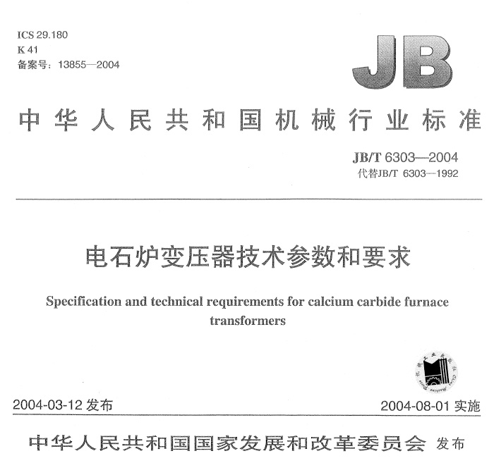JB-T6303-2004电石炉变压器技术参数和要求