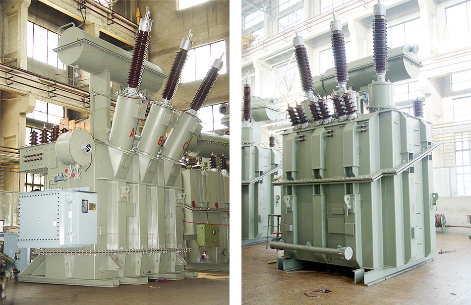 由于矿热炉的生产工艺的改进,对变压器的结构也产生了很大的影响,如全密闭冶炼的发展,促使变压器在15000kVA以上,设计为单相变压器,水冷管(可调铜管)侧出线,有载调压,统一冷却的结构,此类产品已生产多套。